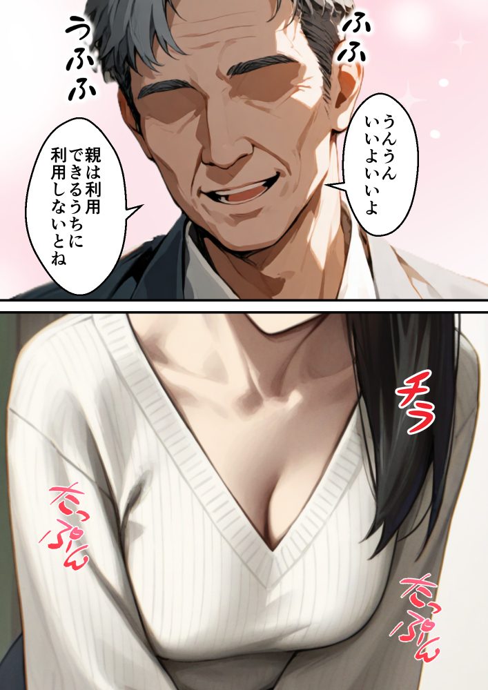 同居している息子の嫁をマジで好きになってしまう還暦男の義父が、ひょんなことから彼女の弱味を握り、その魅力的な身体を欲しいままにする。忘れていた男の活力が全身にみなぎり始める。
